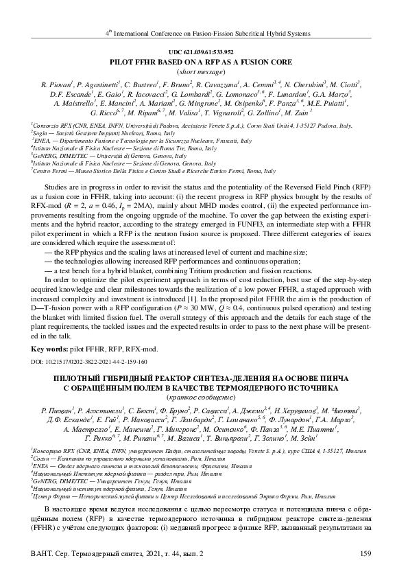 (PDF) PILOT FFHR BASED ON A RFP AS A FUSION CORE