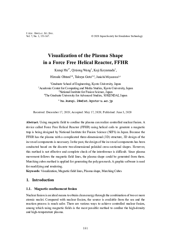 (PDF) Visualization of the Plasma Shape in a Force Free Helical Reactor ...