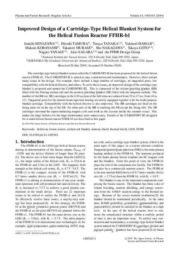 (PDF) Blanket design using FLiBe in helical-type fusion reactor FFHR
