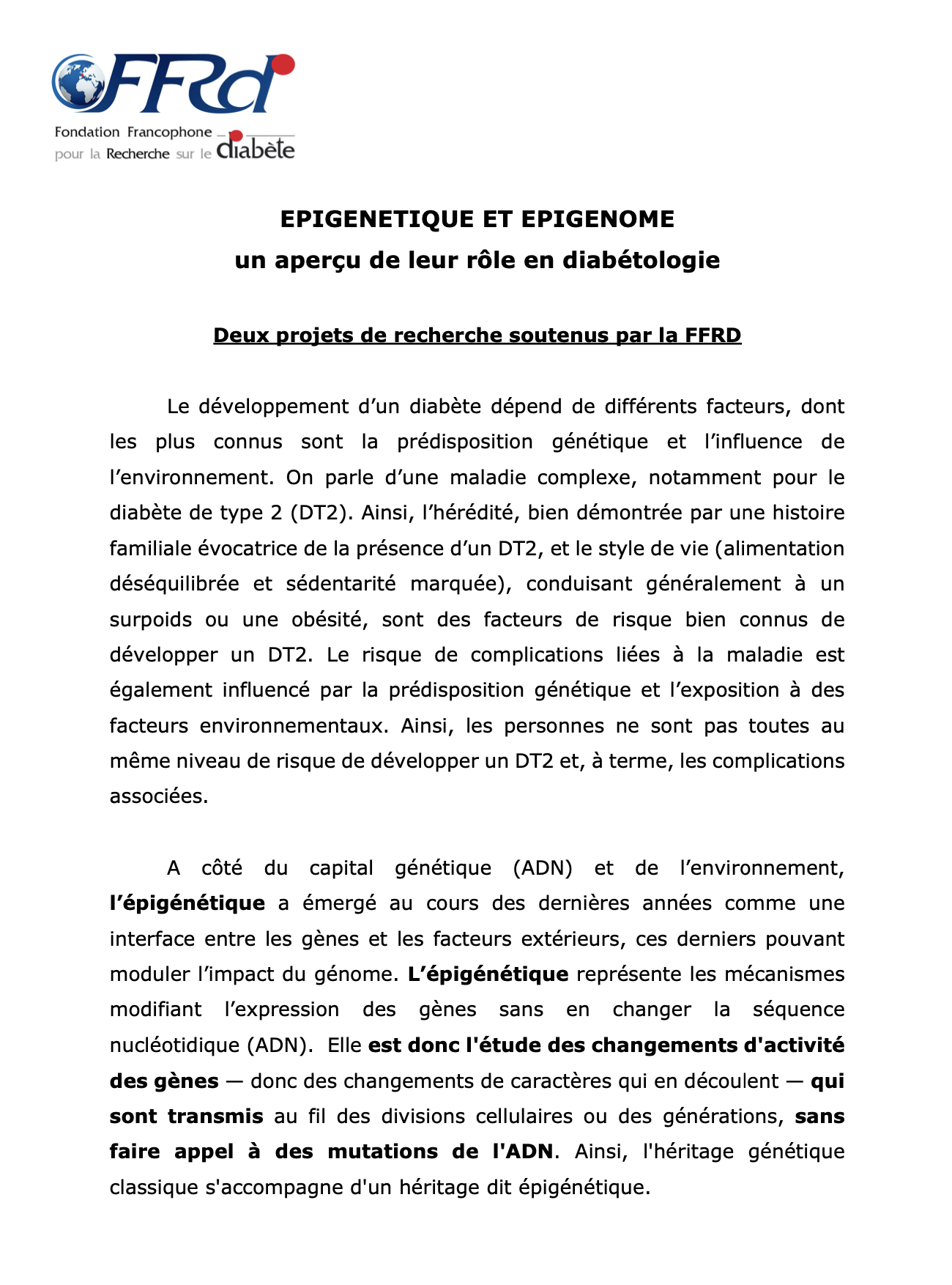 Fondation Francophone pour la Recherche sur le Diabète - FFRD sur ...
