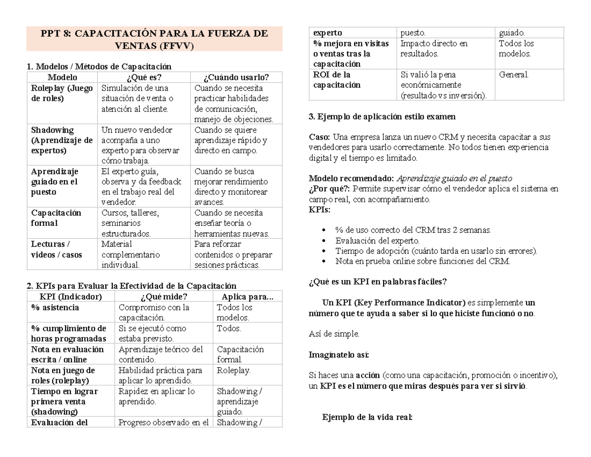 PPT 8: Capacitación para la Fuerza de Ventas (FFVV) y KPIs de ...
