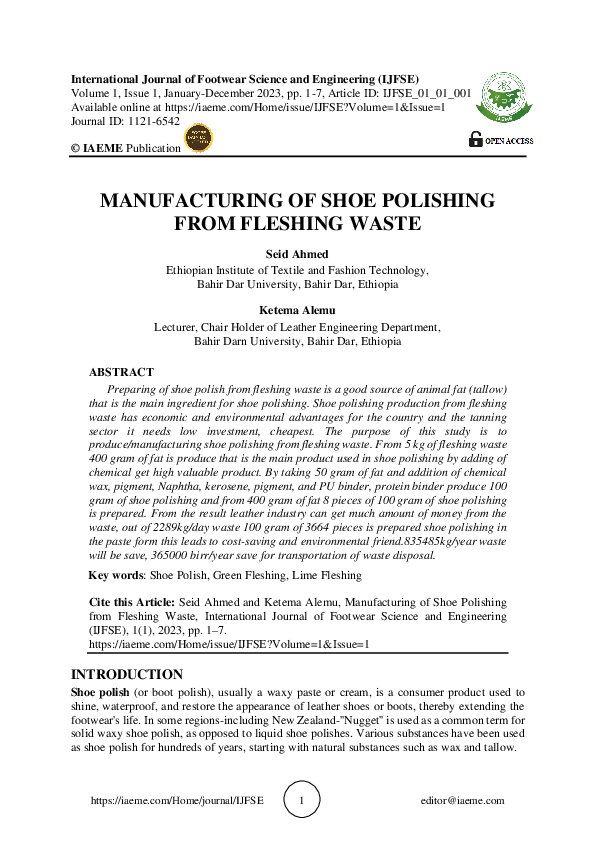 (PDF) MANUFACTURING OF SHOE POLISHING FROM FLESHING WASTE