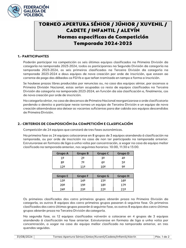 Normas Especificas de Competición de Voleibol FGVB 24-25 | PDF