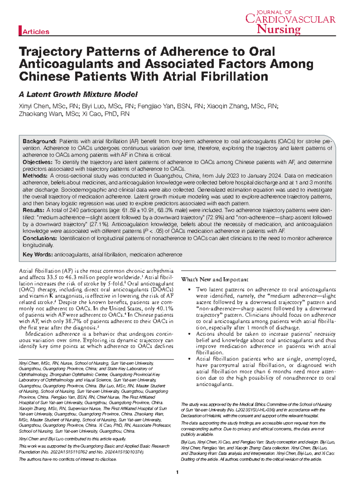 Adherence Trajectory Patterns of Oral Anticoagulants in AF Patients: A ...