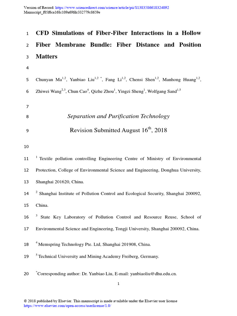CFD Simulations of Fiber-Fiber Interactions in A Hollow Fiber Membrane ...