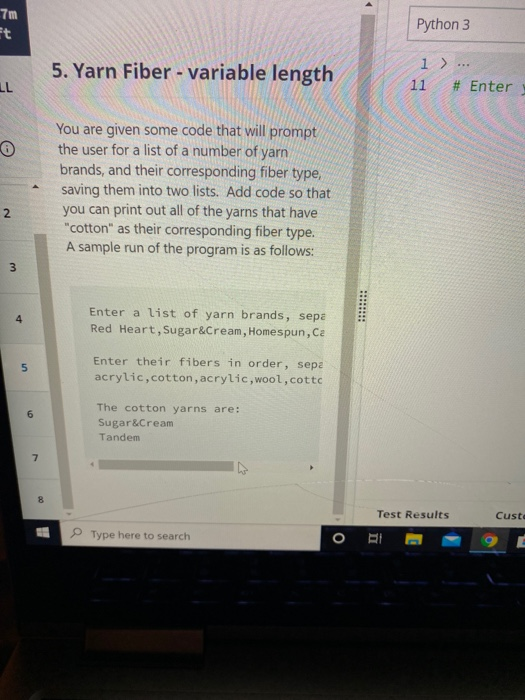 Solved 7m Python 3 5. Yarn Fiber - variable length Enter You | Chegg.com