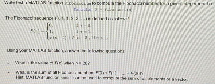 Solved Write test a MATLAB function Fibonacci, m to compute | Chegg.com