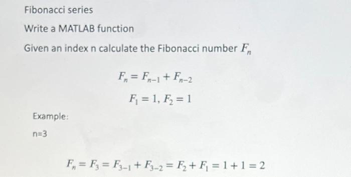 Solved Fibonacci series Write a MATLAB function Given an | Chegg.com