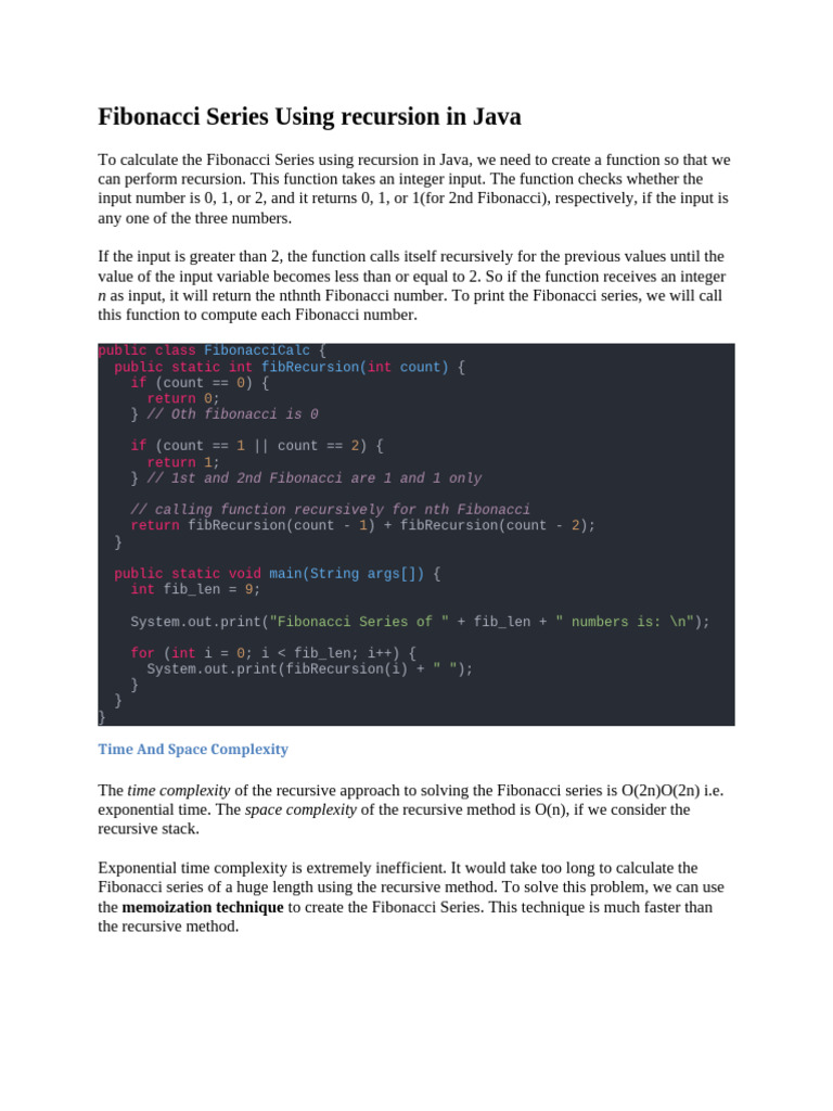 Fibonacci Series in Java Using Recursion | TCS, Infosys, Cognizant ...