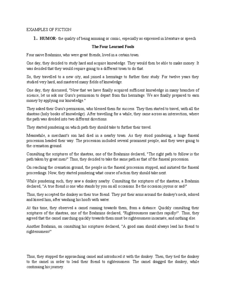 Short Story Examples Of Fiction at Katheryn Timothy blog