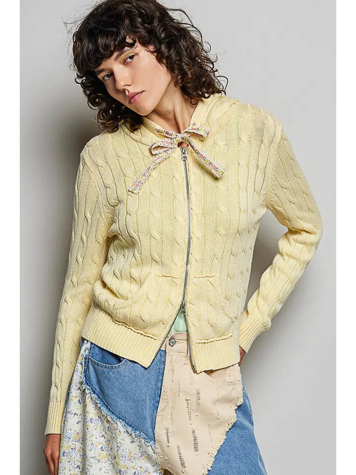 Sunflower Fields Cable Knit Zip Up Hooded Cardigan – Glamour Farms Boutique