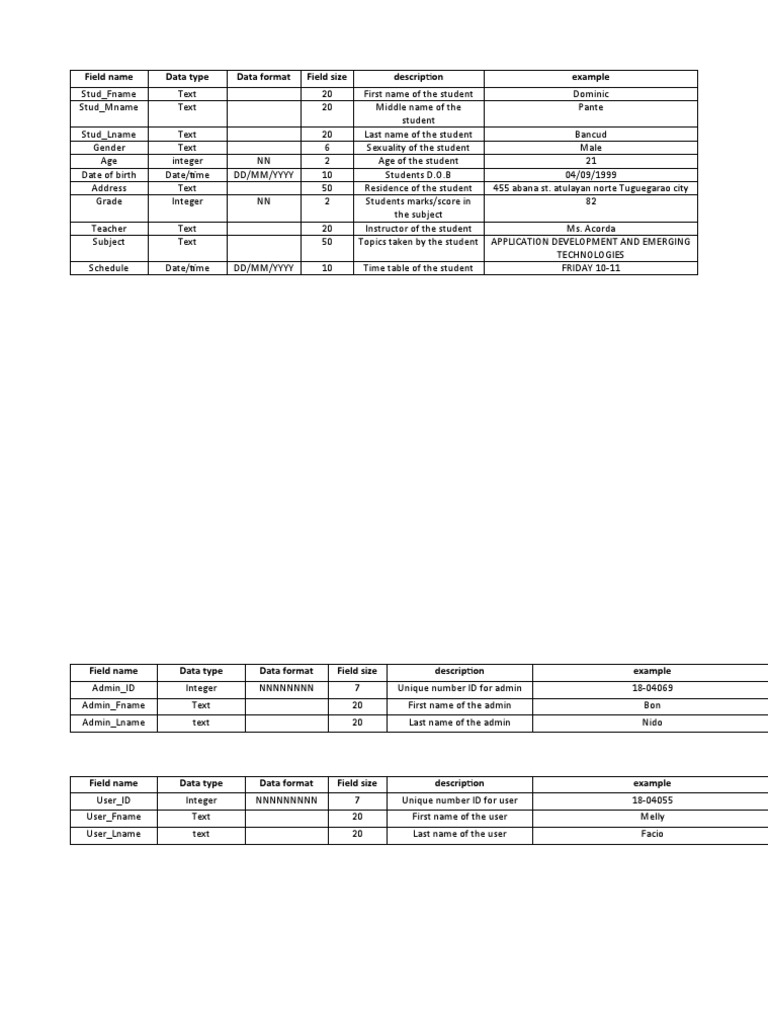 Field Name Data Type Data Format Field Size Description Example | PDF