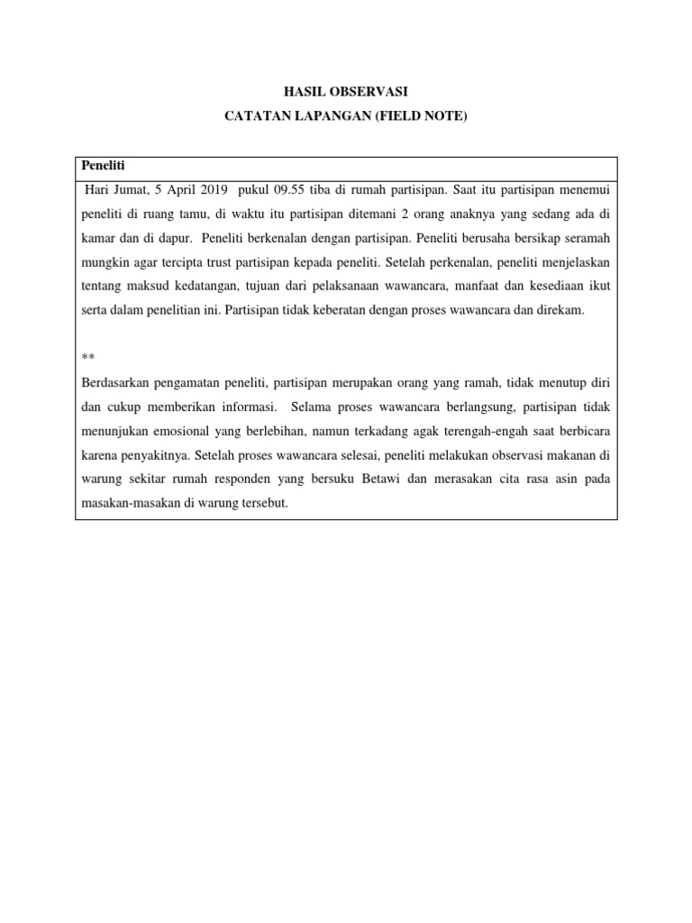 Contoh Template Field Note | PDF