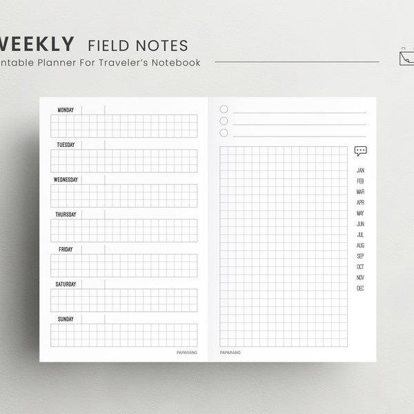 Weekly Field Notes TN Planner Insert, Undated Week, Weekly Journal ...