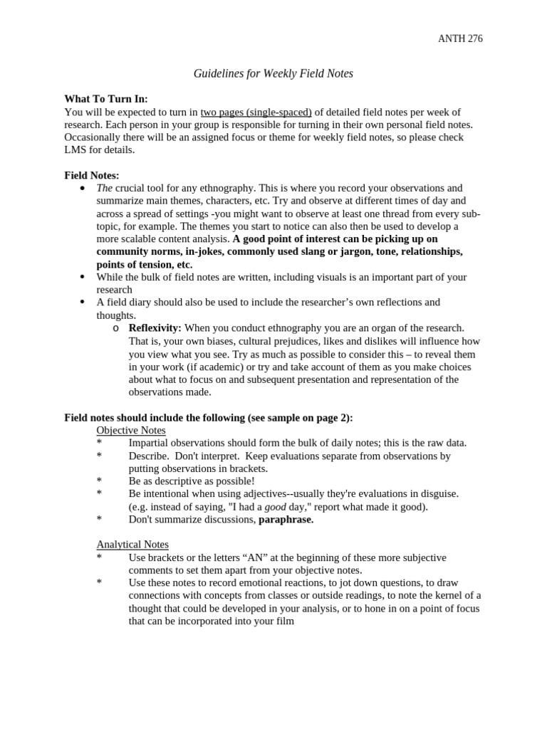Guidelines For Field Notes | PDF | Psychological Concepts | Cognition