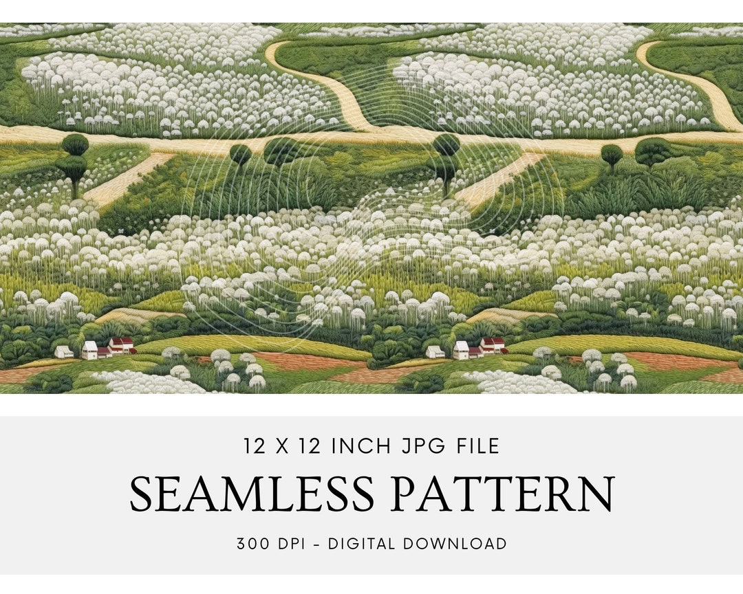 White Field Embroidery Seamless Pattern, Farmers Embroidery Seamless ...