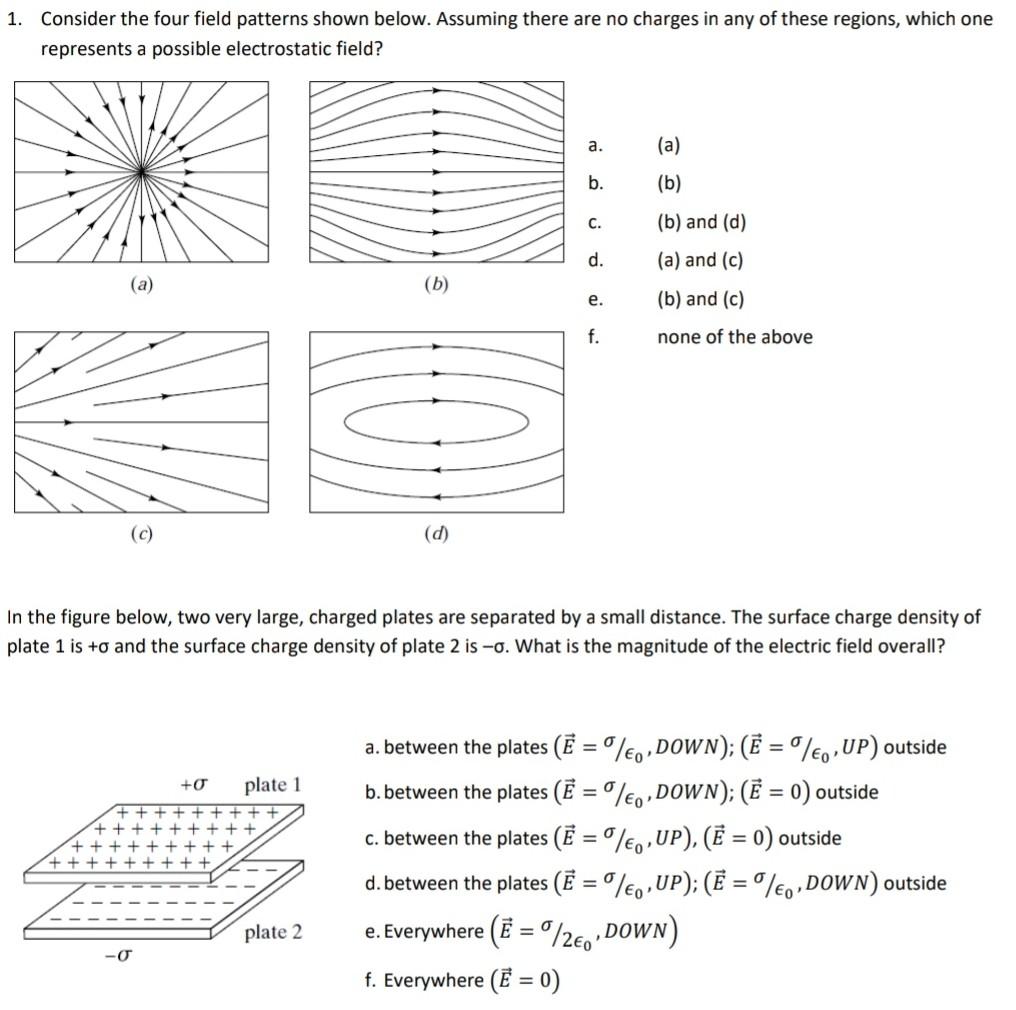 Solved 1. Consider the four field patterns shown below. | Chegg.com