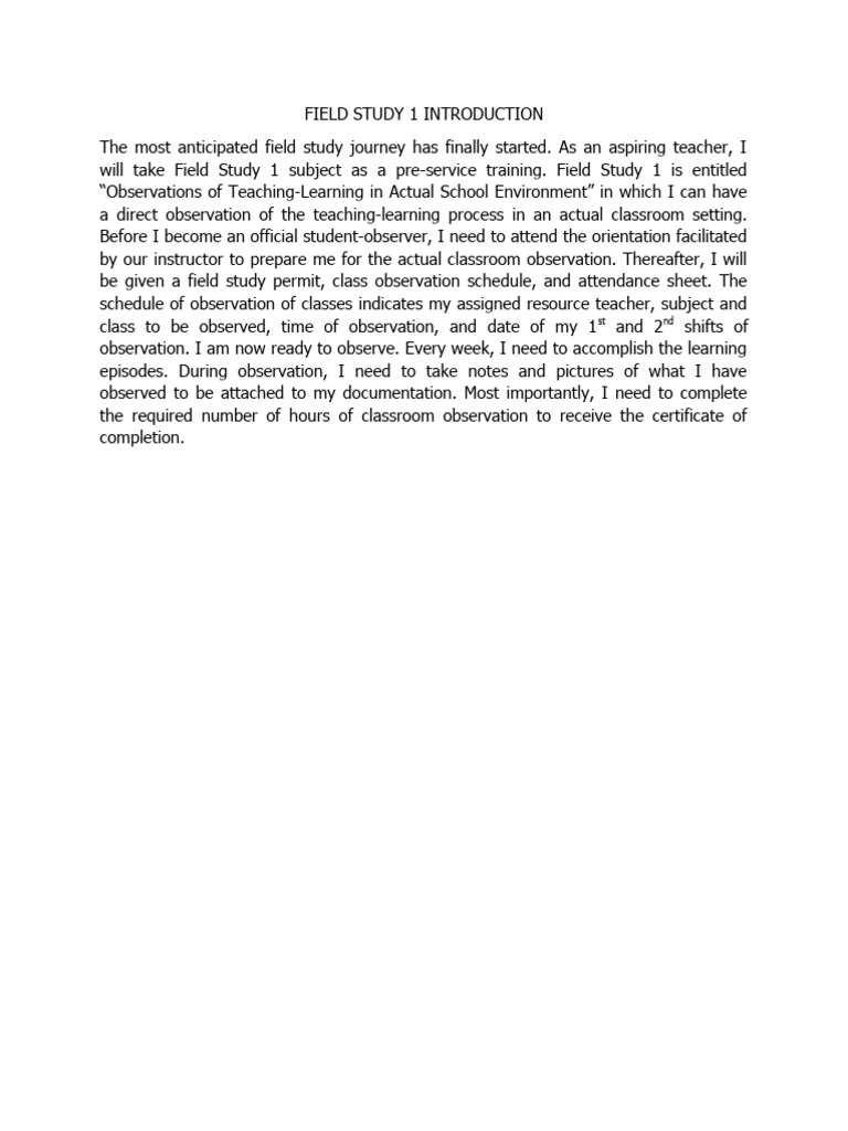 Field Study 1 docx Sample Guide you may edit the contents ...