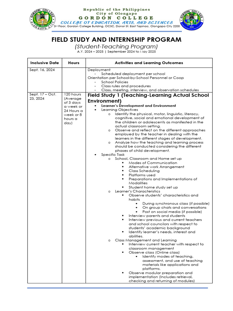 Field Study Program Activities & Guidelines (FS 1 & FS 2) - Studocu