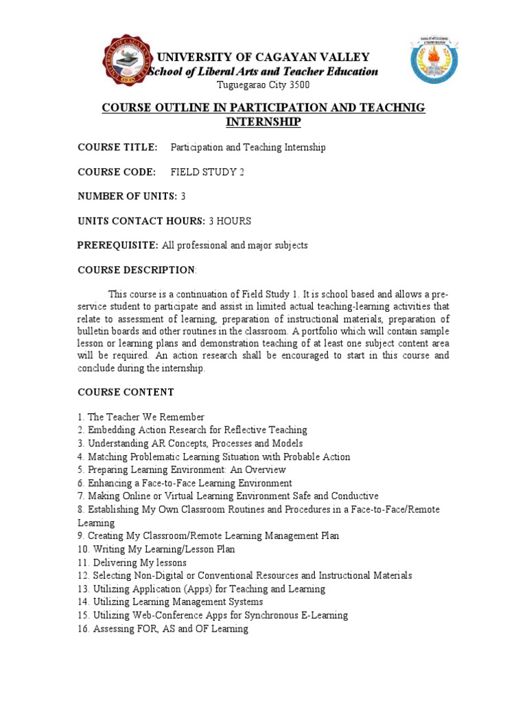 Field Study 2 Course Outline | PDF | Educational Assessment | Teaching ...