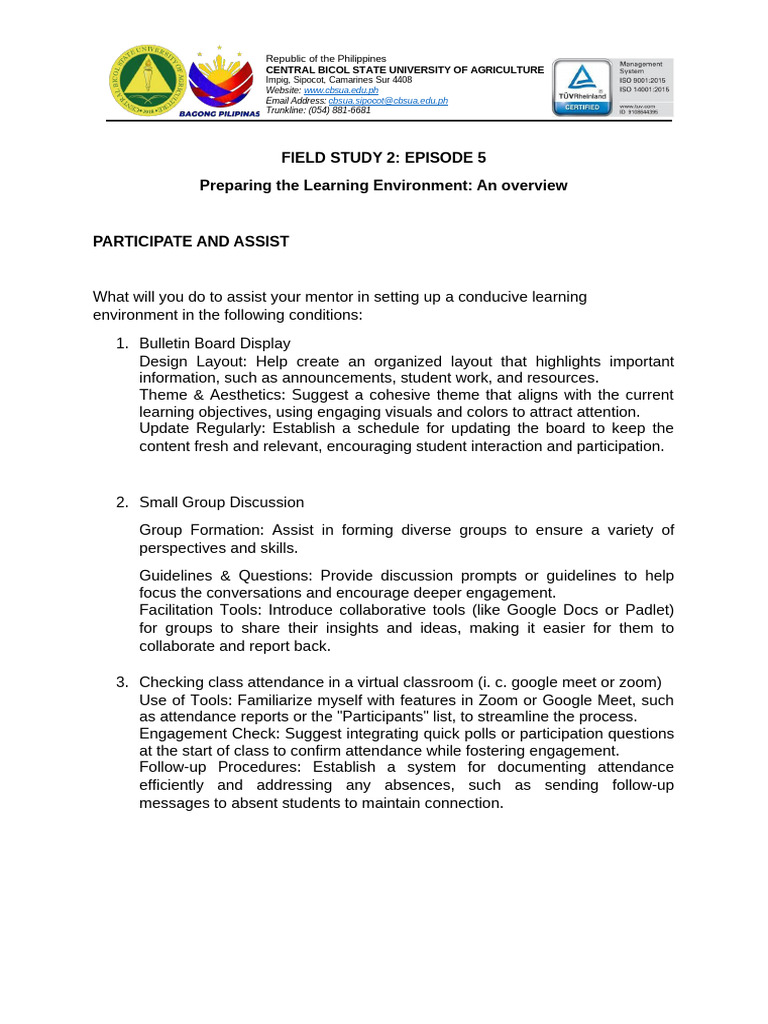 Field- Study 1- episode 2 topic and answers - FIELD STUDY 1 LEARNING ...