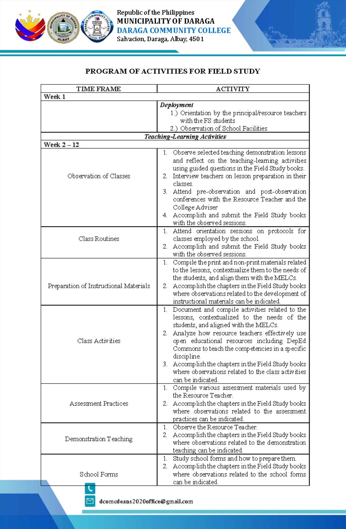 Field Study Program Activities & Guidelines (FS 1 & FS 2) - Studocu