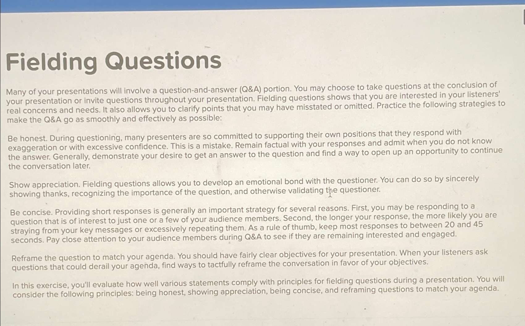 Solved Fielding QuestionsMany of your presentations will | Chegg.com