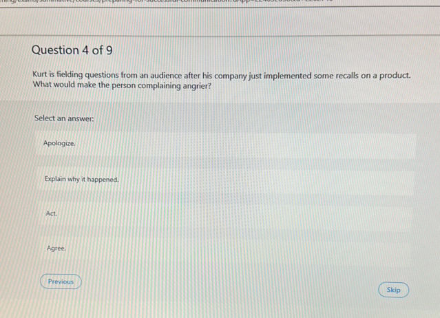 Question 4 of 9 Kurt is fielding questions | StudyX