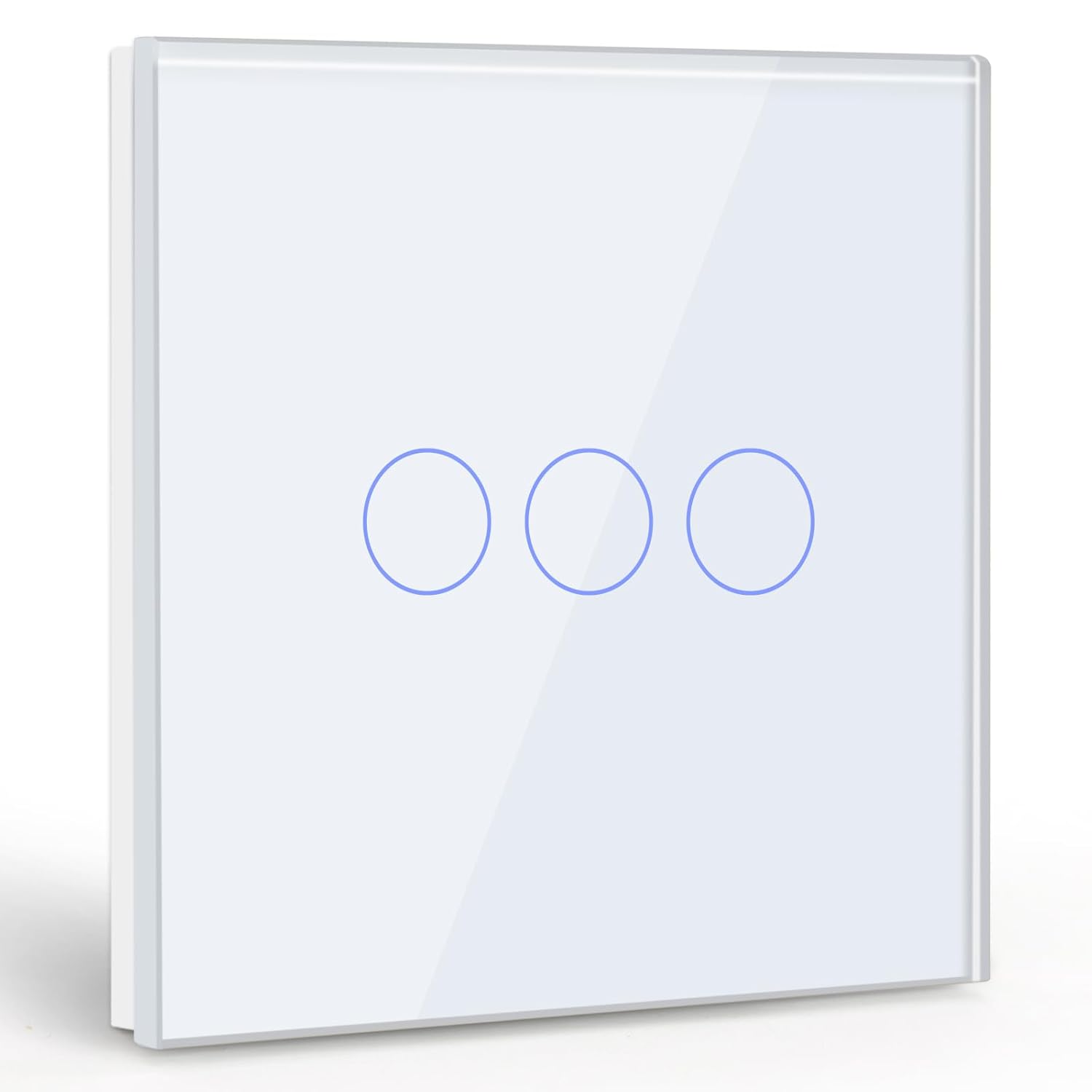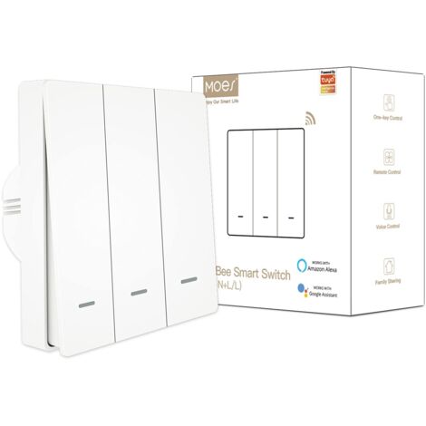 BLANCHE - 3 gang - Interrupteur mural intelligent Tuya WiFi, fil neutre ...