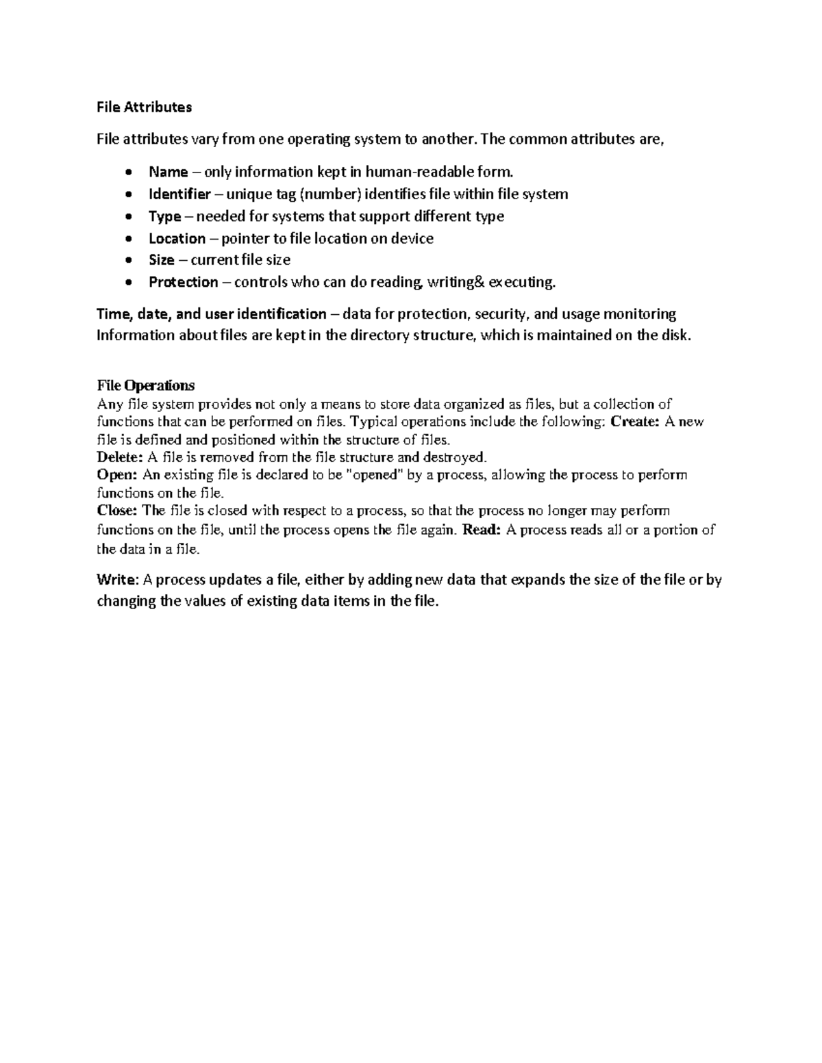 File Systems in OS - (1) Explain file attributes and file operations in ...