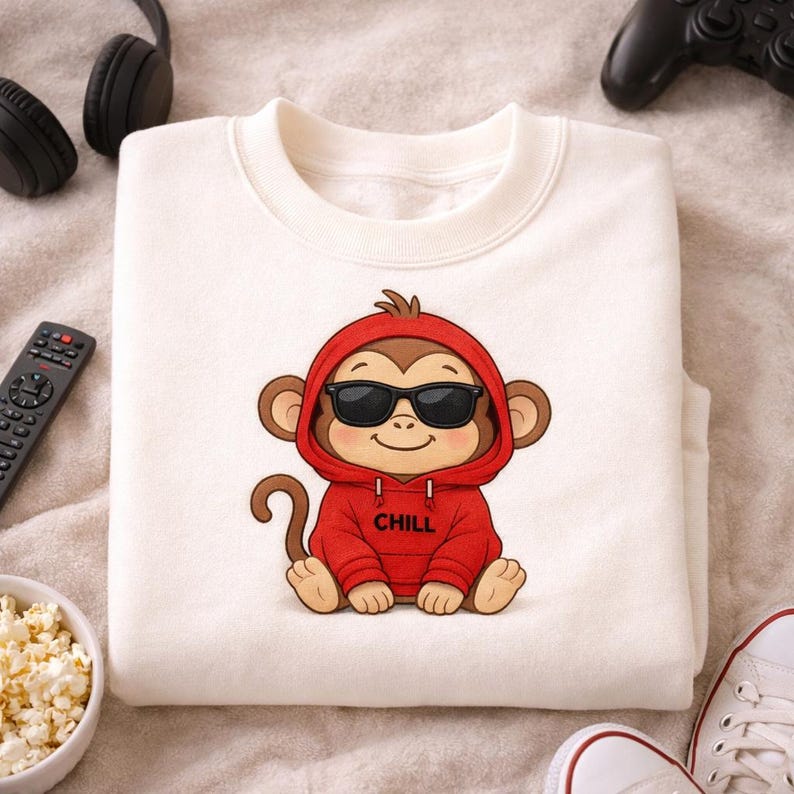 Monkey Embroidery Design Hoodie Sunglasses Cartoon (digital File ...