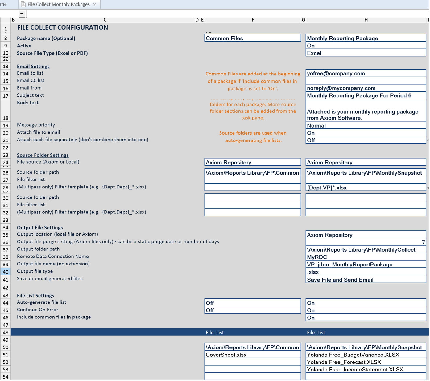 Setting up file collect