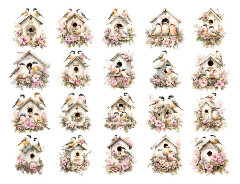 Spring Birdhouse Birds Watercolor Clipart Collection (20 PNG Files) - Etsy