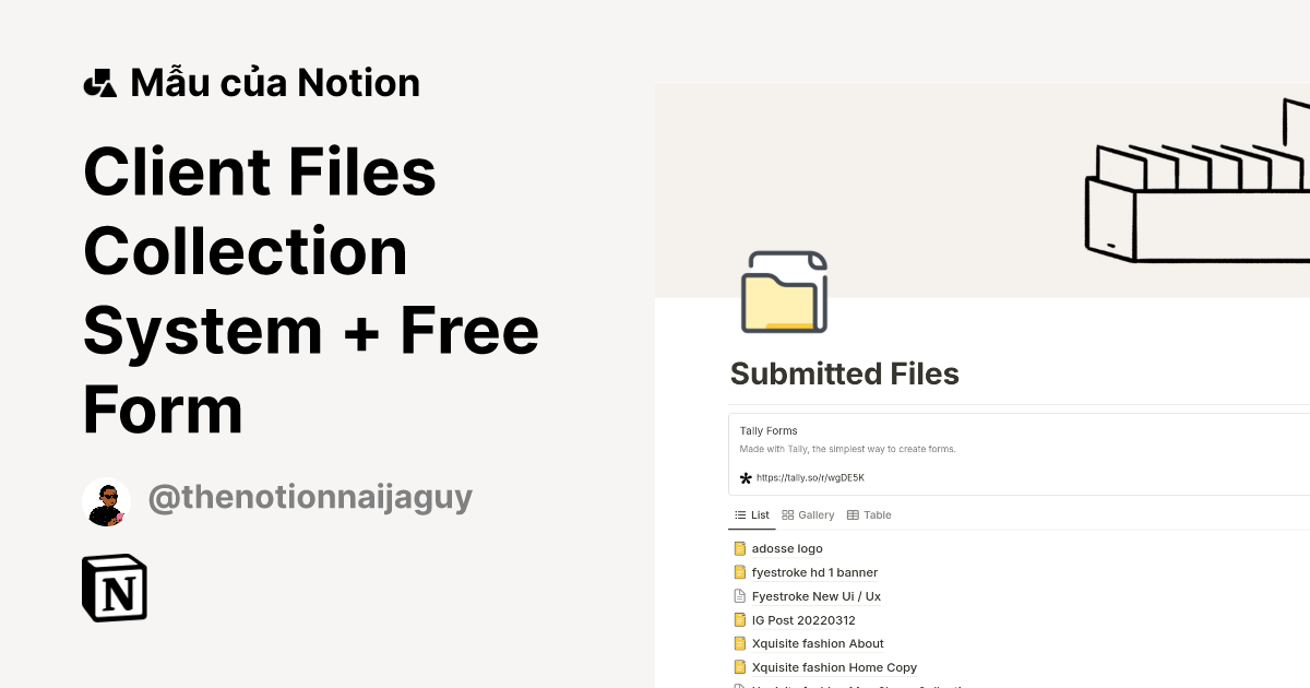 Mẫu Client Files Collection System + Free Form | Thị trường Notion