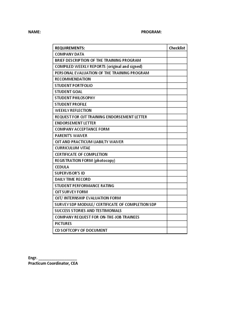 Sample Checklist for a Laboratory Experiment - ) Drawn qualitative ...