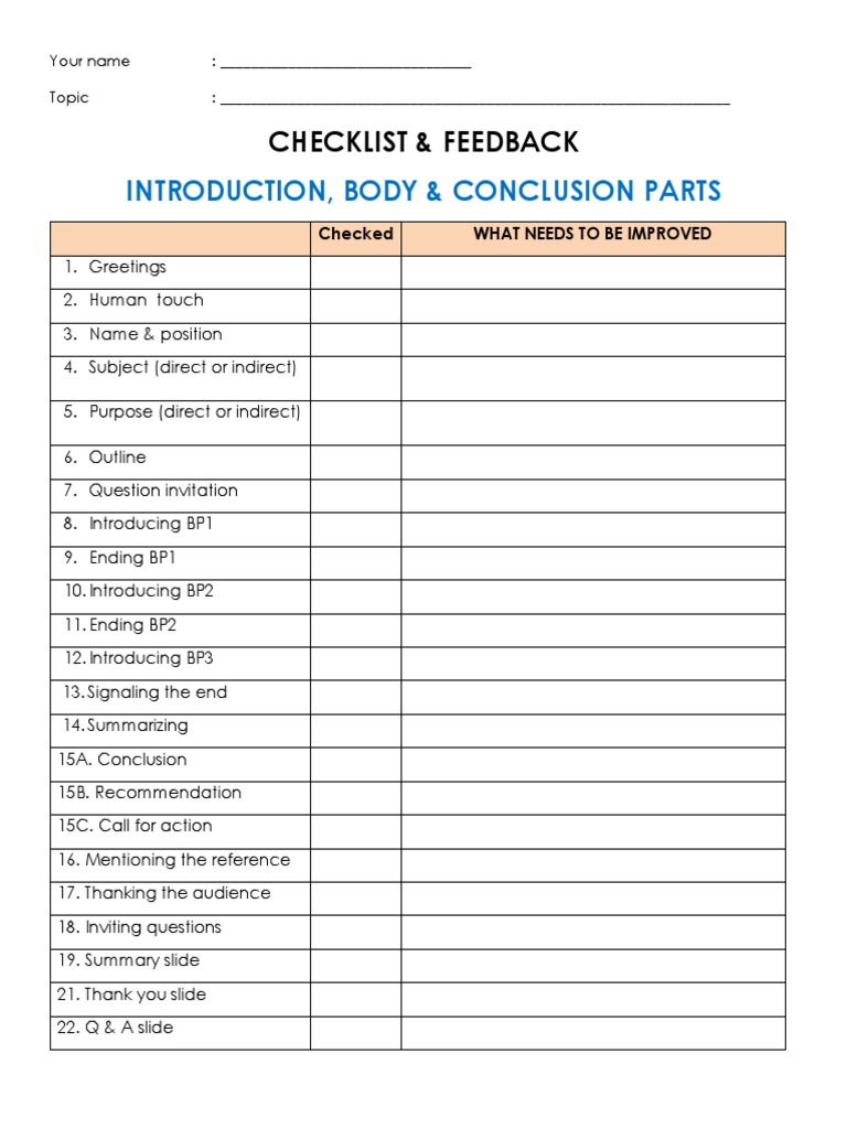 05 Checklist Intro, Body, Conclusion | PDF | Career & Growth