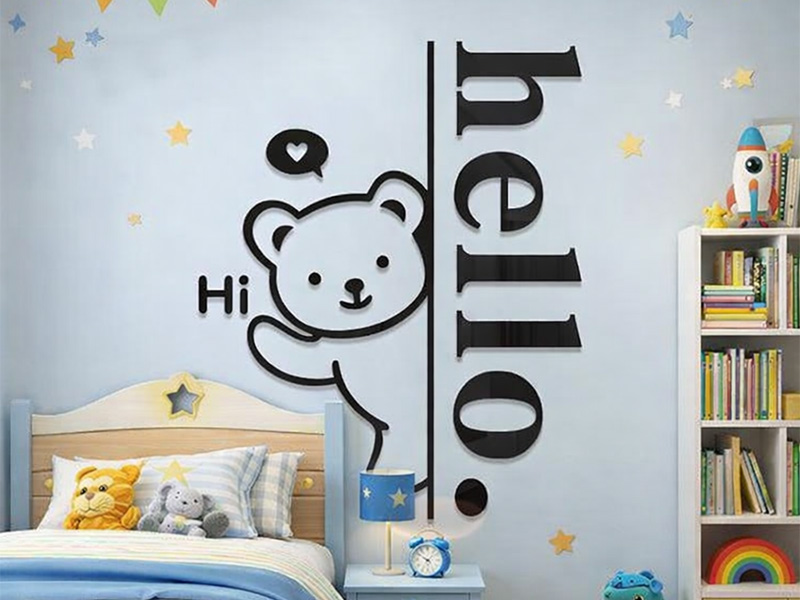 Laser Cut Cute Bear Hello Sign Wall Decor Template | Vectors File