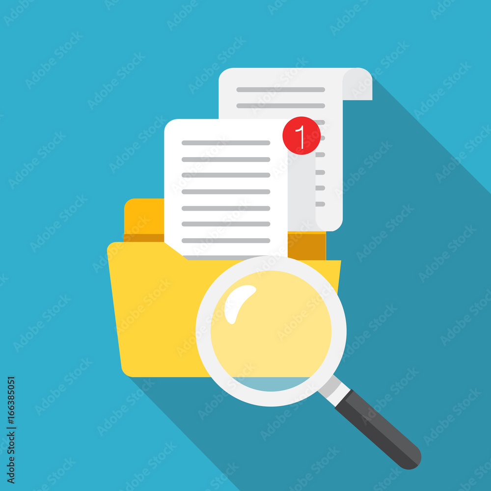 File folder directory and magnifying glass, tick checkmark icon. Search ...