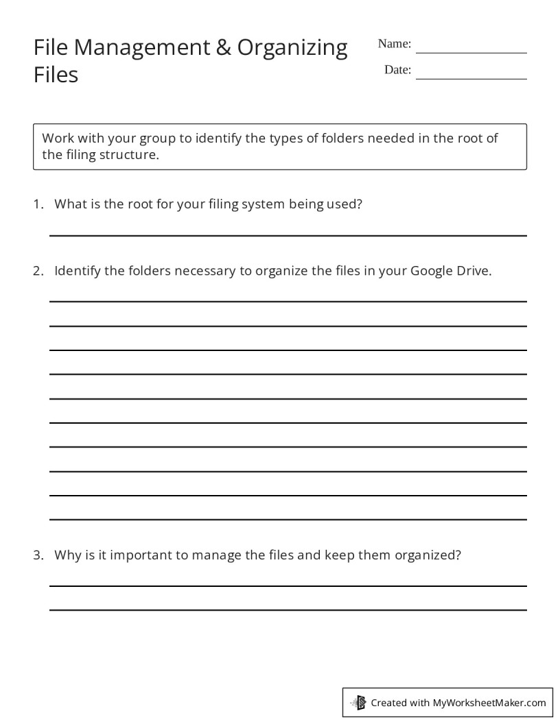 File Management & Organizing Files - My Worksheet Maker: Create Your ...