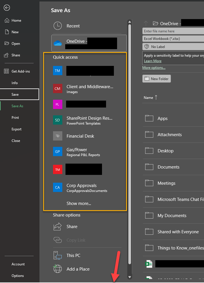 In Excel, how do I remove the Quick Access pane in the File Save ...