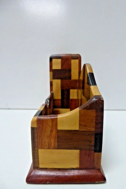 VINTAGE PARQUETRY INLAID Wooden Timber Letter File Rack Desk Set Pen ...