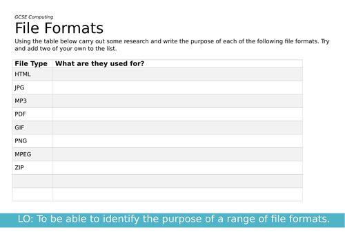 File formats worksheet | Teaching Resources