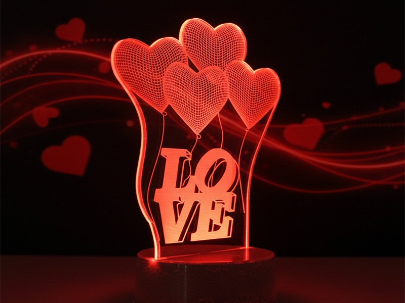 Laser Engraved Love Balloon 3D Illusion Lamp Romantic Heart LED Lamp ...