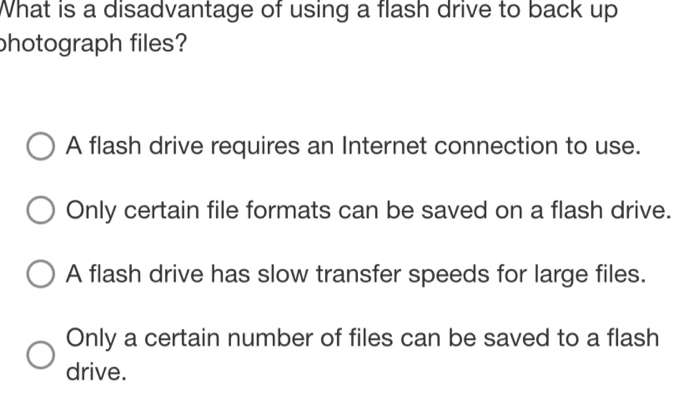 Solved: What is a disadvantage of using a flash drive to back up ...