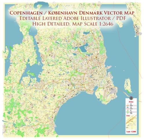 Copenhagen / København Denmark PDF Vector Map: City Plan High Detailed ...