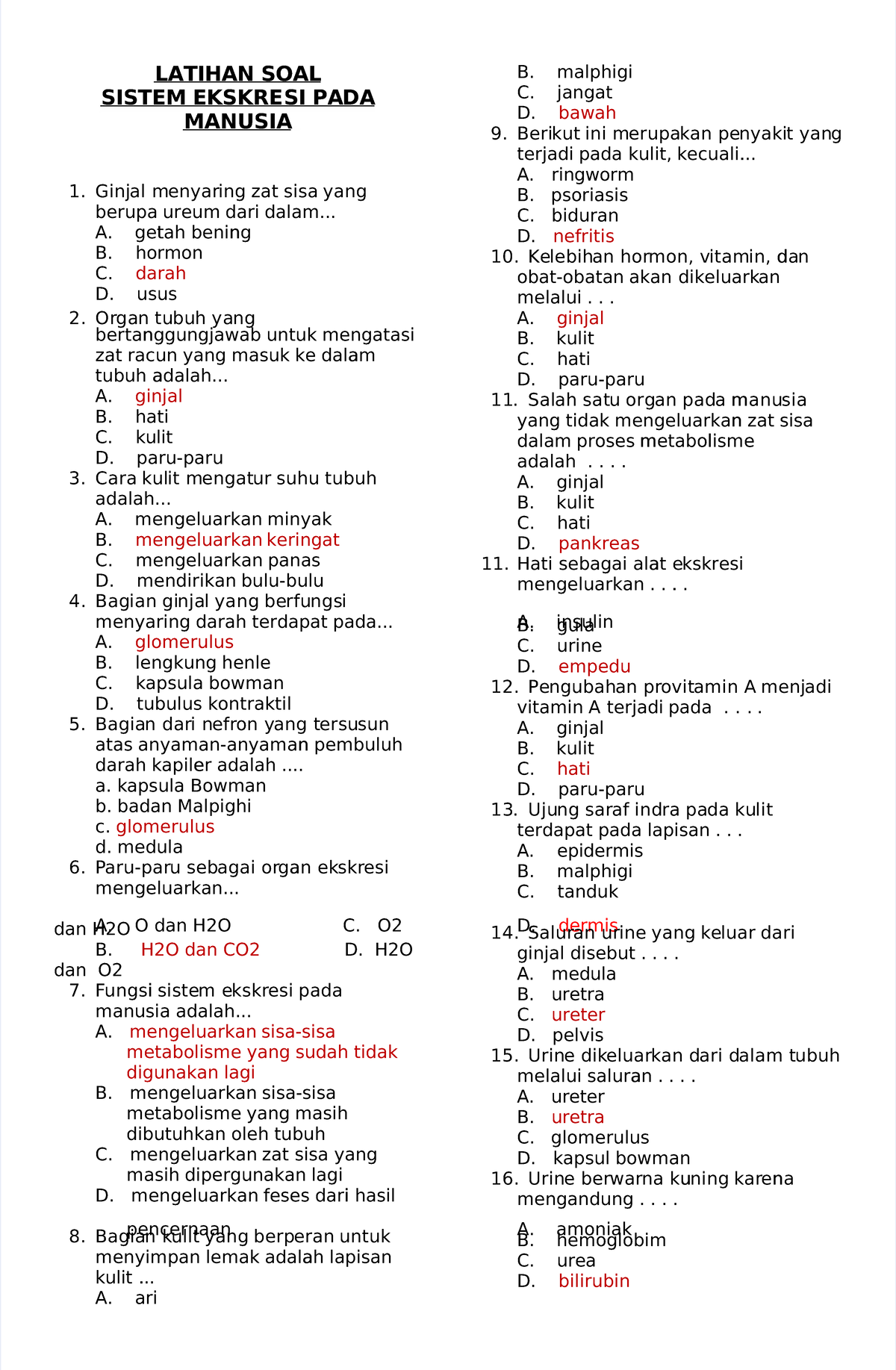 SOAL DAN PEMBAHASAN SISTEM EKSKRESI MANUSIA (PDF) - Studocu