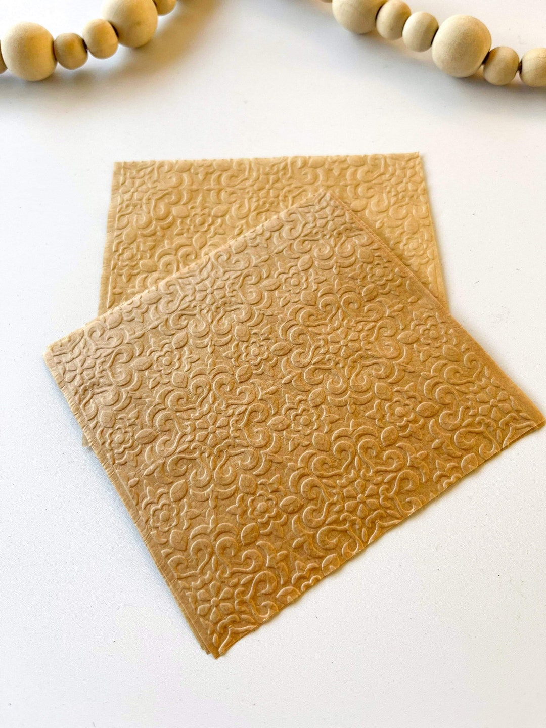 Specialty Paper | Suede Filigree Taupe Flock on White Matte Cotton ...