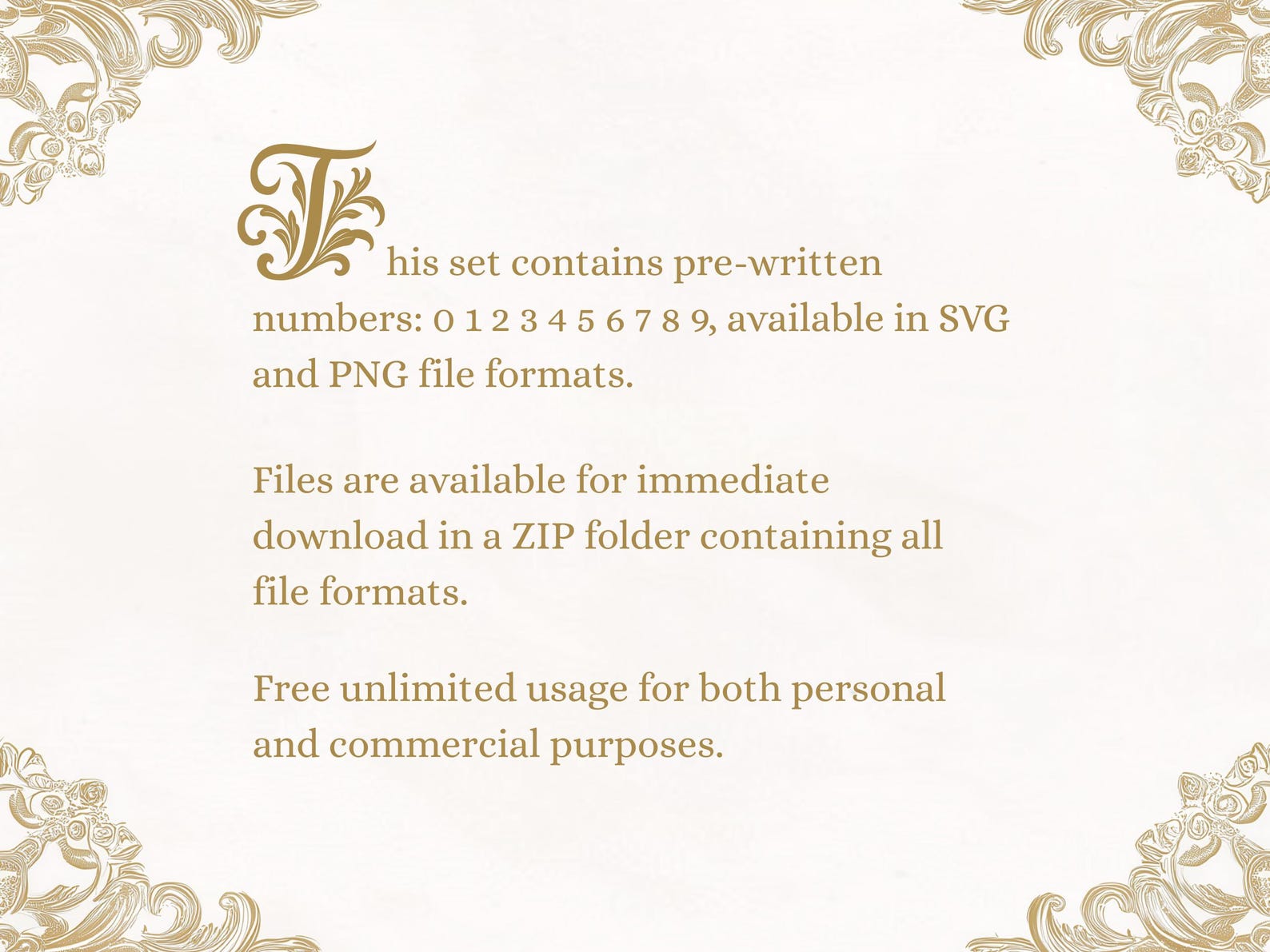 Ornate Numbers SVG Filigree Set Vintage Gold Baroque Numbers Digital ...