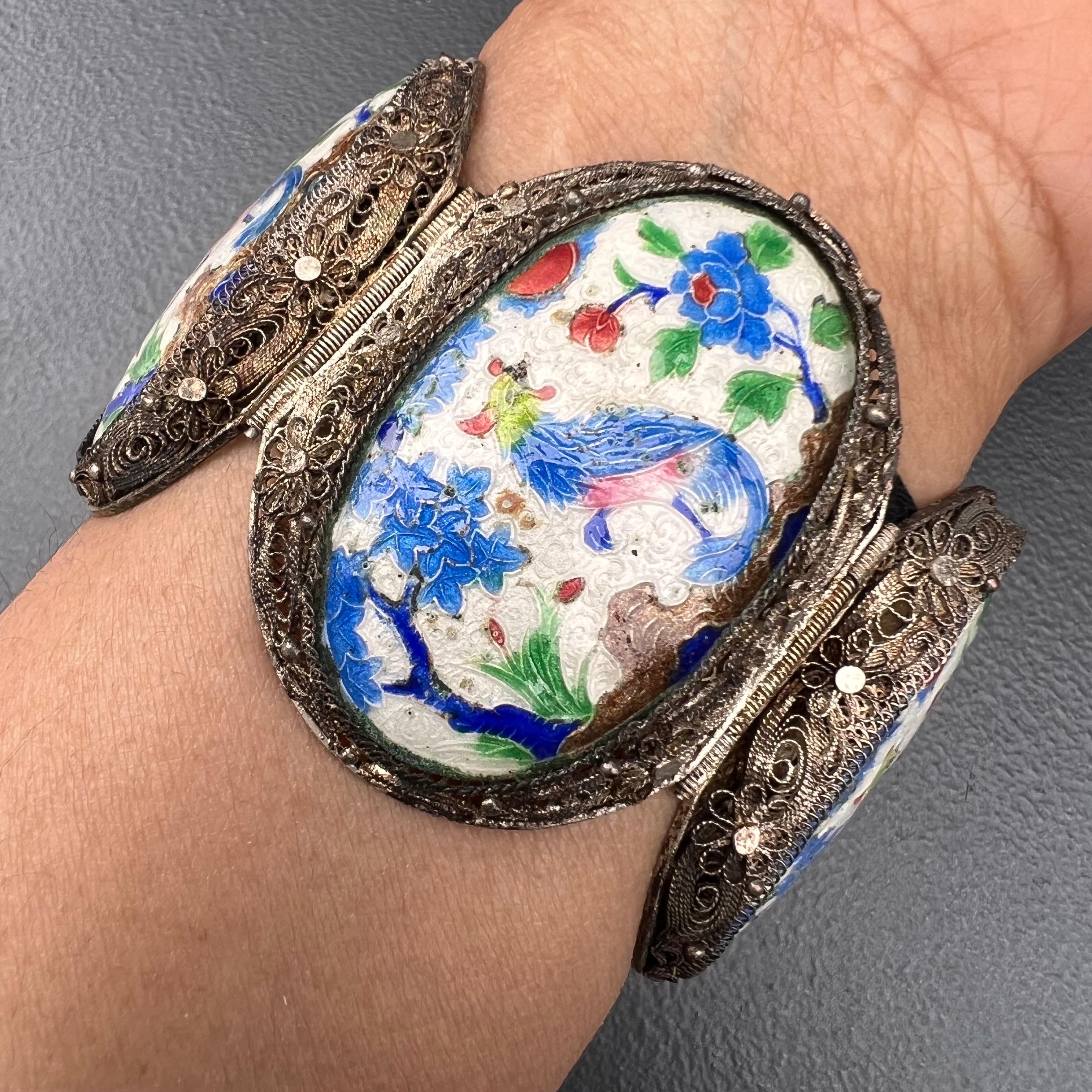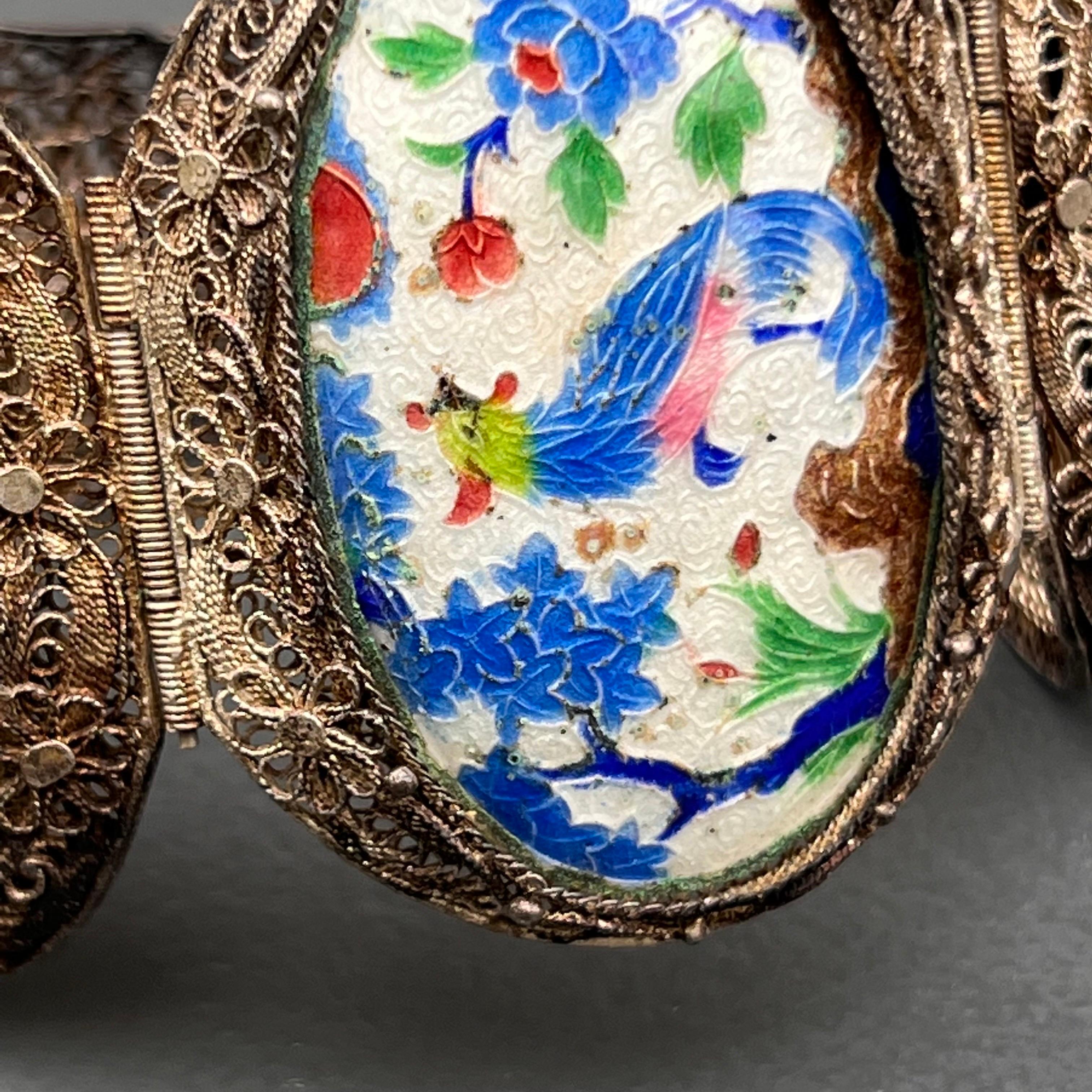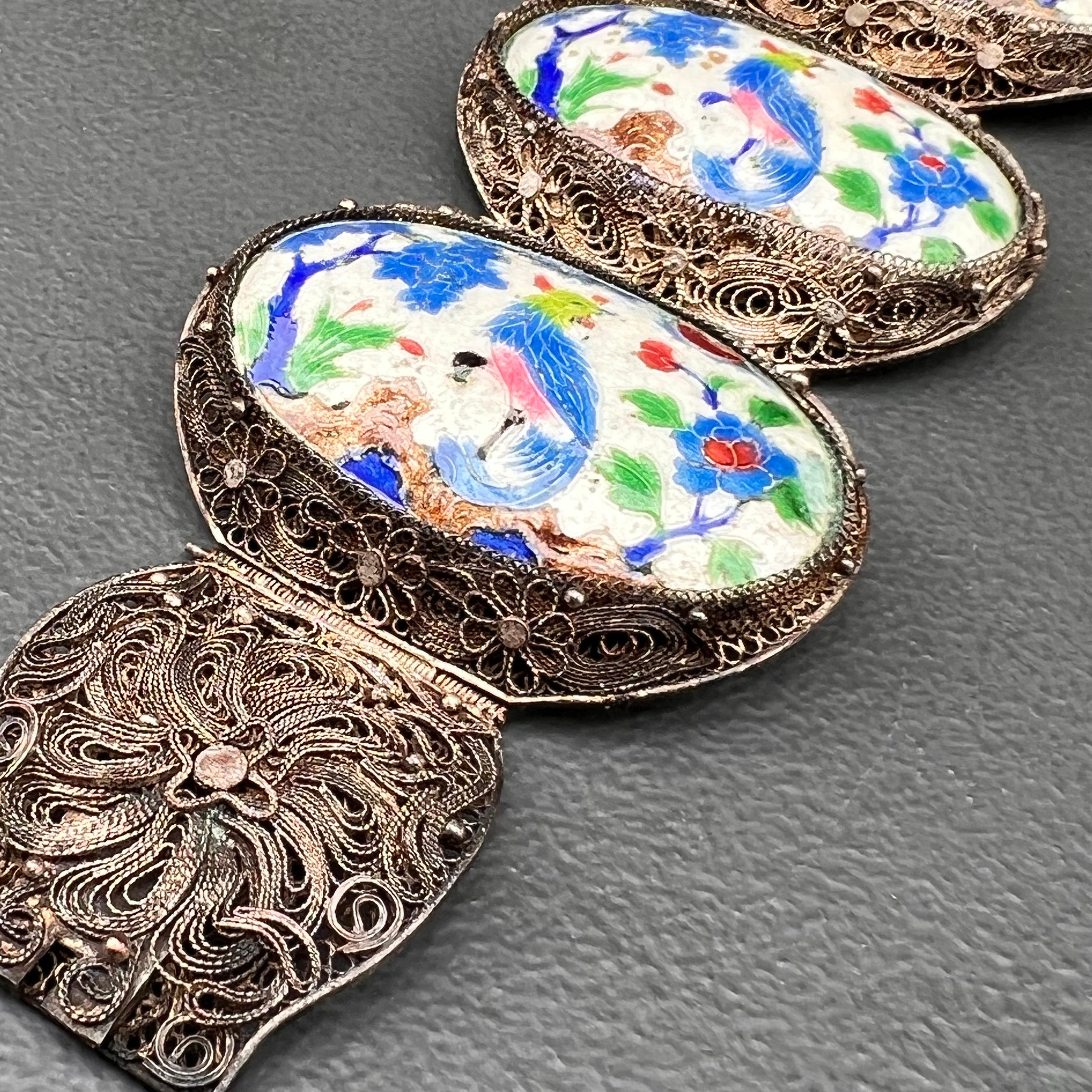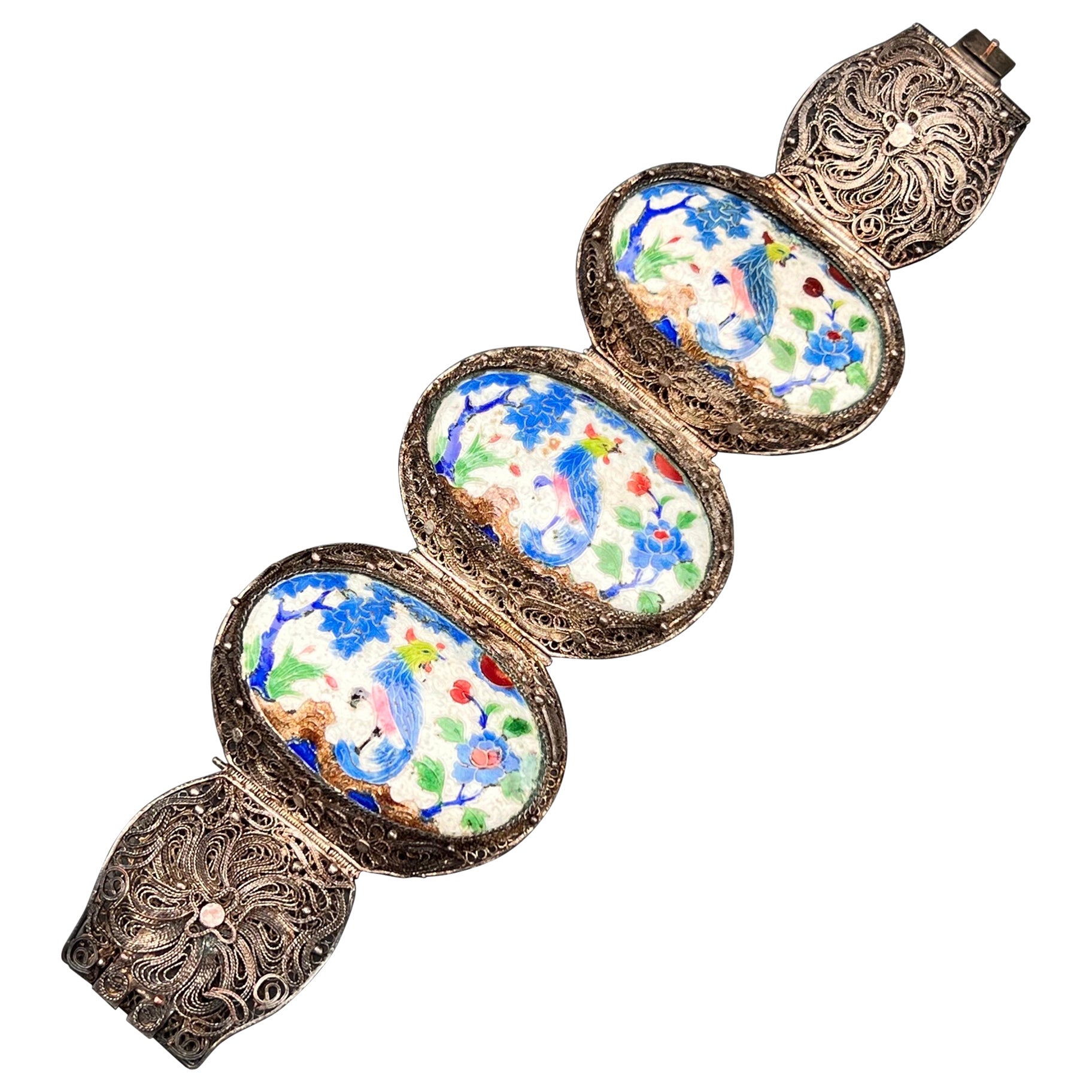 Chinese Export Enamel Filigree Panel Bracelet Wide For Sale at 1stDibs