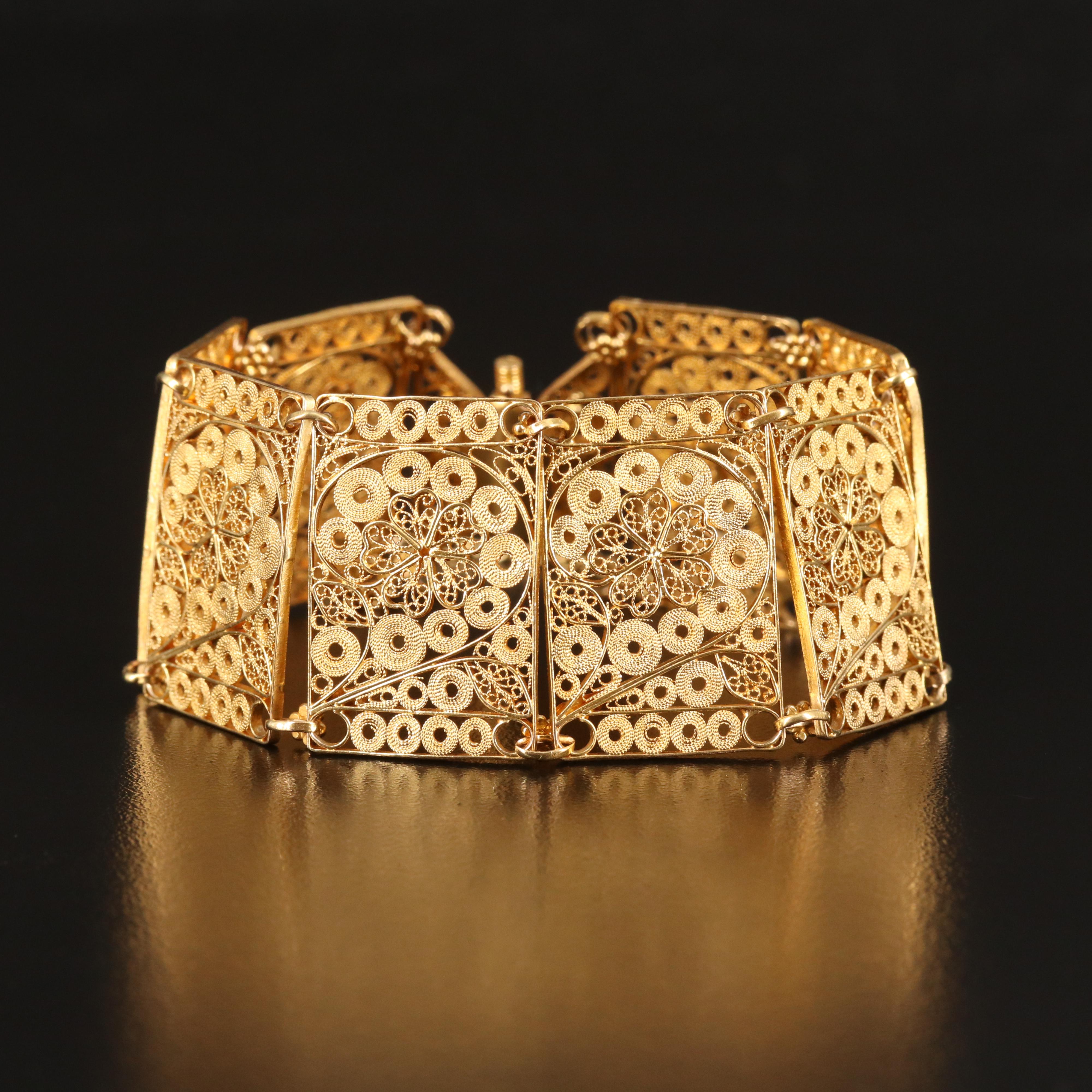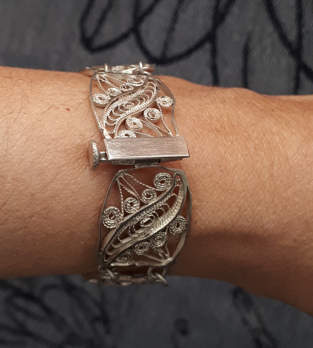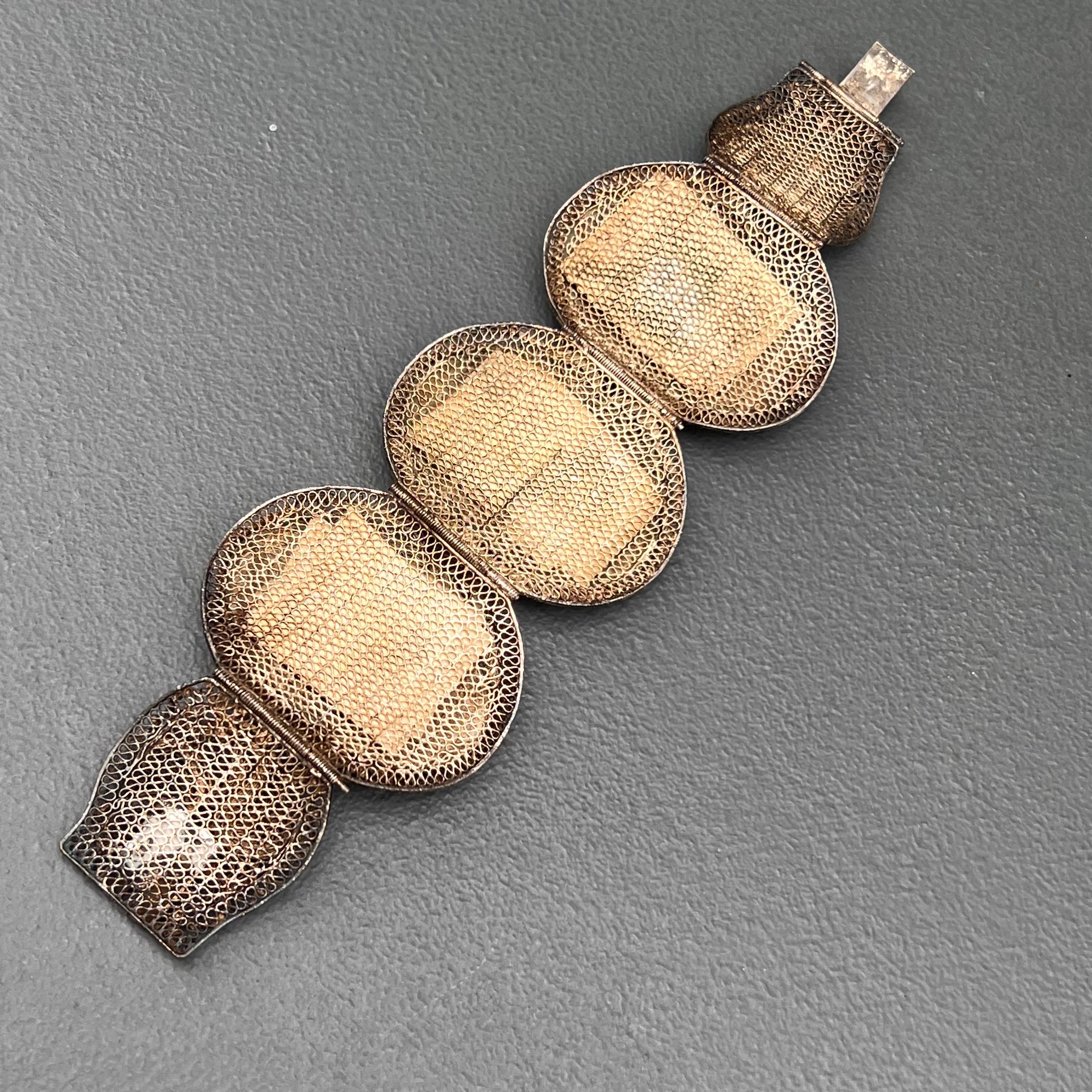 Vintage Egyptian Silver Filigree Panel Bracelet – Anteeka